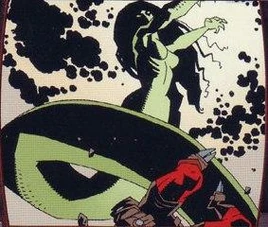 During the events the Fury, as Hellboy approached Nimue, the witches present thought originally, he Odin, since he wore a robe and had only one eye, which was characteristic of the old deity. In truth Hellboy had given up his one eye for the Baba Yaga, so that head could sneak through Nimue's army undetected.
