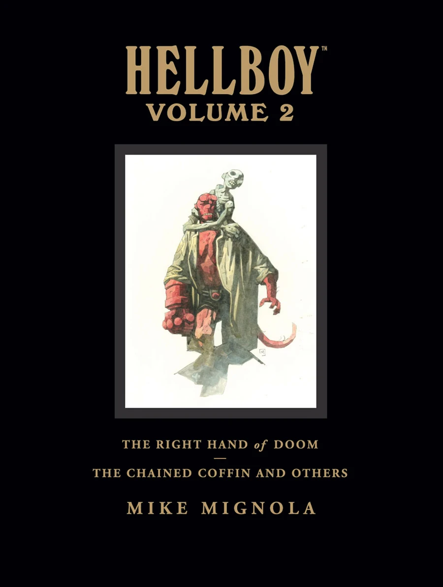 In addition to Trade Paperback Collections, the line of Hellboy comics is also collected in large over-sized Library Editions. Each volume contains the equivalent of two trade paperbacks as well as additional sketch book material. The books are published as Hardcovers and measure in at 9" by 12" (as compared to the trade paperback's 7" by 10"). Seven volumes have been published to date.